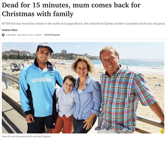 In 2012 Cassandra was found floating dead in the ocean with no heart-beat after an epileptic seizure. After more than 15 minutes she was resusitated on the beach despite being asystolic or flatlining. The chances of resusitation after an asystolic event are less than 1 per cent. She suffered some brain injury but successfully rehabiltated herself drawing upon years of work she had done with her non-verbal son.